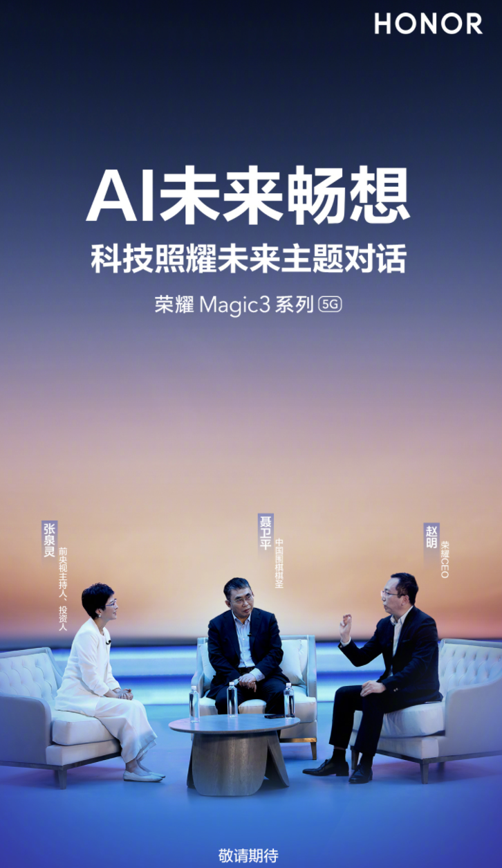 8 月 1 日消息 据荣耀手机官方微博,荣耀终端公司 CEO 赵明将参加“科技照耀未来”主题对话,荣耀 Magic 3 手机将会有多项 AI 技术加持。