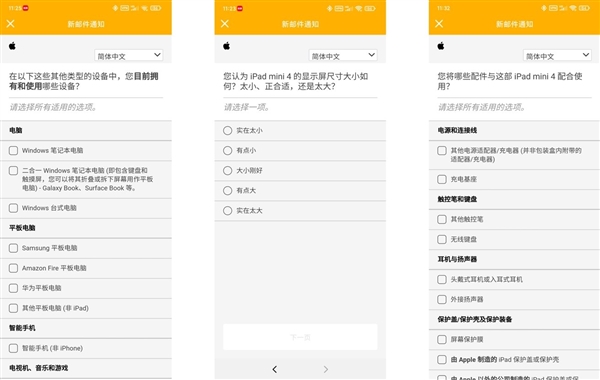 这个问题并不是笔者提出,而是来自苹果中国。部分iPad mini 4用户爆料称,收到了苹果中国的使用调查问卷。