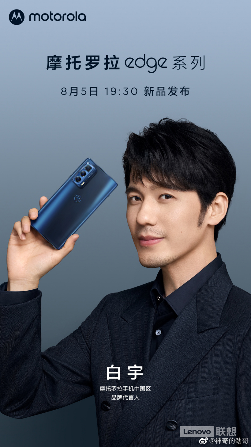 今日摩托罗拉还够公布了最新海报,展现了 edge 系列手机代言人,演员白宇手持新机的照片。