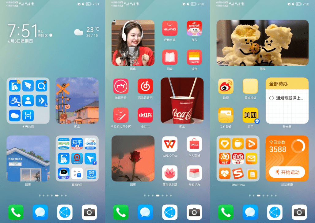 升级HarmonyOS 2 之后,很多用户第一眼就注意到有些APP图标多了一条下划线,比如相机、日历、图库、京东等,上滑这些APP图标即可解锁HarmonyOS 全新桌面最有趣的功能之一——万能卡片。