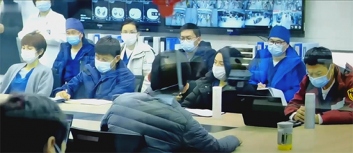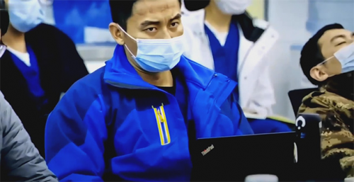 而在电影52分钟左右,中央指导组专家组进入武汉布控工作并组织会议,还有86分钟左右,张涵予饰演的院长张定宇开会探讨提高对病毒认知的相关话题,上述两段剧情可以看到部分医生和专家使用的ThinkPad T15出镜。