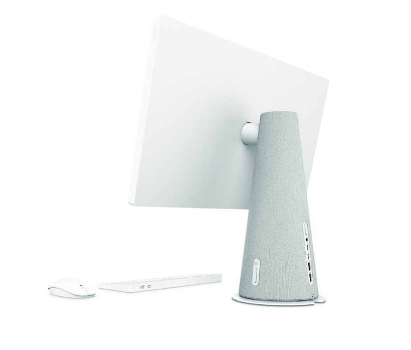 这款一体机的屏幕支持 90 度旋转,内置 B&O 提供的双 5W 扬声器。产品屏幕内置 500 万像素摄像头、麦克风,其中摄像头有着物理开关,可以防止偷窥。