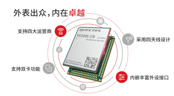移远RG200U模组搭载了展锐唐古拉V510芯片,支持5G NR Sub-6GHz频段及5G独立组网(SA)和非独立组网(NSA)双模网络,并向下兼容4G/3G。其还支持国内四大运营商5G/4G高速接入、TDD和FDD两种模式及双卡功能。