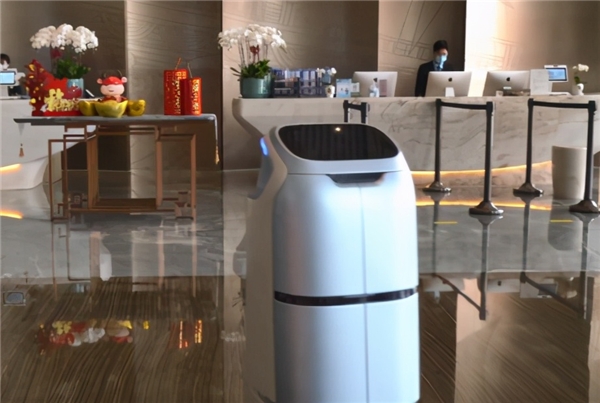 酒店里见到机器人也不再是件稀罕事儿,这个小家伙可以在很多工作场景替代人工,负责送物、送快递、送外卖等等,更好地保护住客安全、健康。