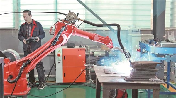 在工业领域,机器人的存在同样不可或缺,运城的一个车间里,一名技术人员正在使用智能机器臂焊接板材,不仅提高了生产效率,而且保证了生产安全。