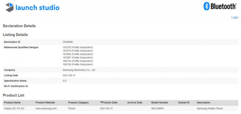 该认证涵盖型号为 SM-G990N、SM-G990B 和 SM-G990B_SD 的手机,都支持蓝牙 5.0。