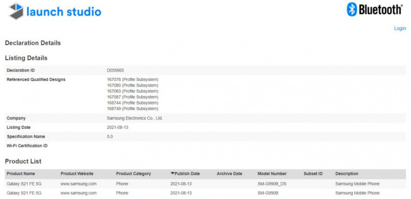 8 月 14 日消息 三星 Galaxy S21 FE 5G 现在已经获得了蓝牙 SIG 权威机构的认证,这标志着该手机即将准备正式上市。