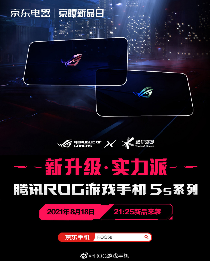 华硕腾讯 ROG 游戏手机 5s/Pro 将于 8 月 18 日晚在国内发布:骁龙 888+ 旗舰