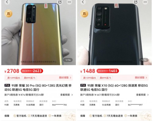 如果想要购入高性价比的荣耀机型,转转严选卖场也有众多选择。如荣耀上一代数字系列荣耀30 Pro,同样是5G机型,搭载麒麟990芯片,95新8+128G的配置到手价仅需2623元不到,比新机优惠1100元。此外还有荣耀中端机型之王X系列的荣耀X10,搭载麒麟820芯片并且是升降全面屏,主打通信能力和续航能力,95新6+128G的价格只需1403元,绝对的性价比之选。