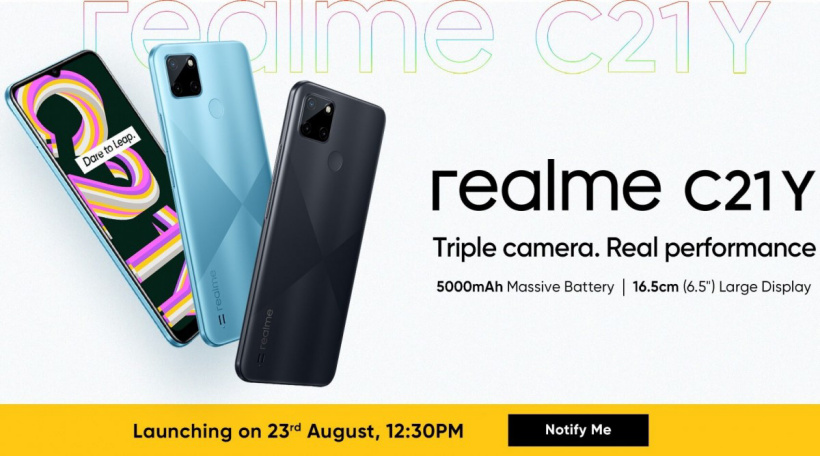 8 月 21 日消息 realme 真我手机今日官宣,将于 8 月 23 日在印度发布 realme C21Y 手机。该手机将搭载紫光展锐虎贲 T610 芯片,具有 2 颗 1.8GHz A75 大核 + 6 颗 1.8GHz A55 小核。