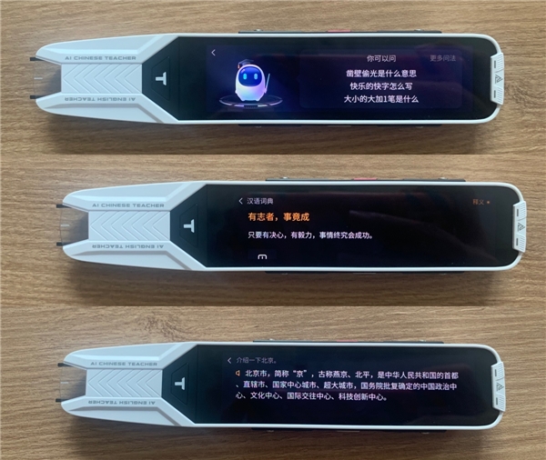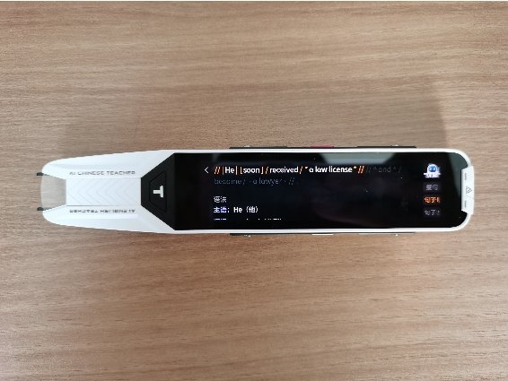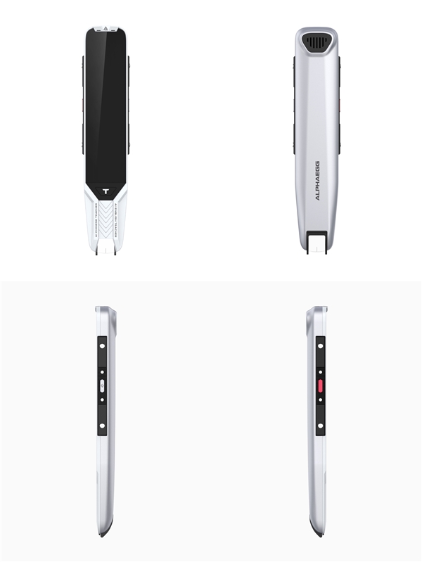 笔身正面来看屏幕非常大,足足有3.7寸,就阅读体验来说,呈现的内容更多,视觉更畅爽。屏幕采用高硬度玻璃盖板、四周防摔围栏包裹且下端有手握防滑条,防止了手滑摔碎屏幕的可能。在防滑条和屏幕中间还有一个T键,即Teacher ,号称可以一键呼唤AI老师(具体功能,我会在下面功能篇给大家解析)。