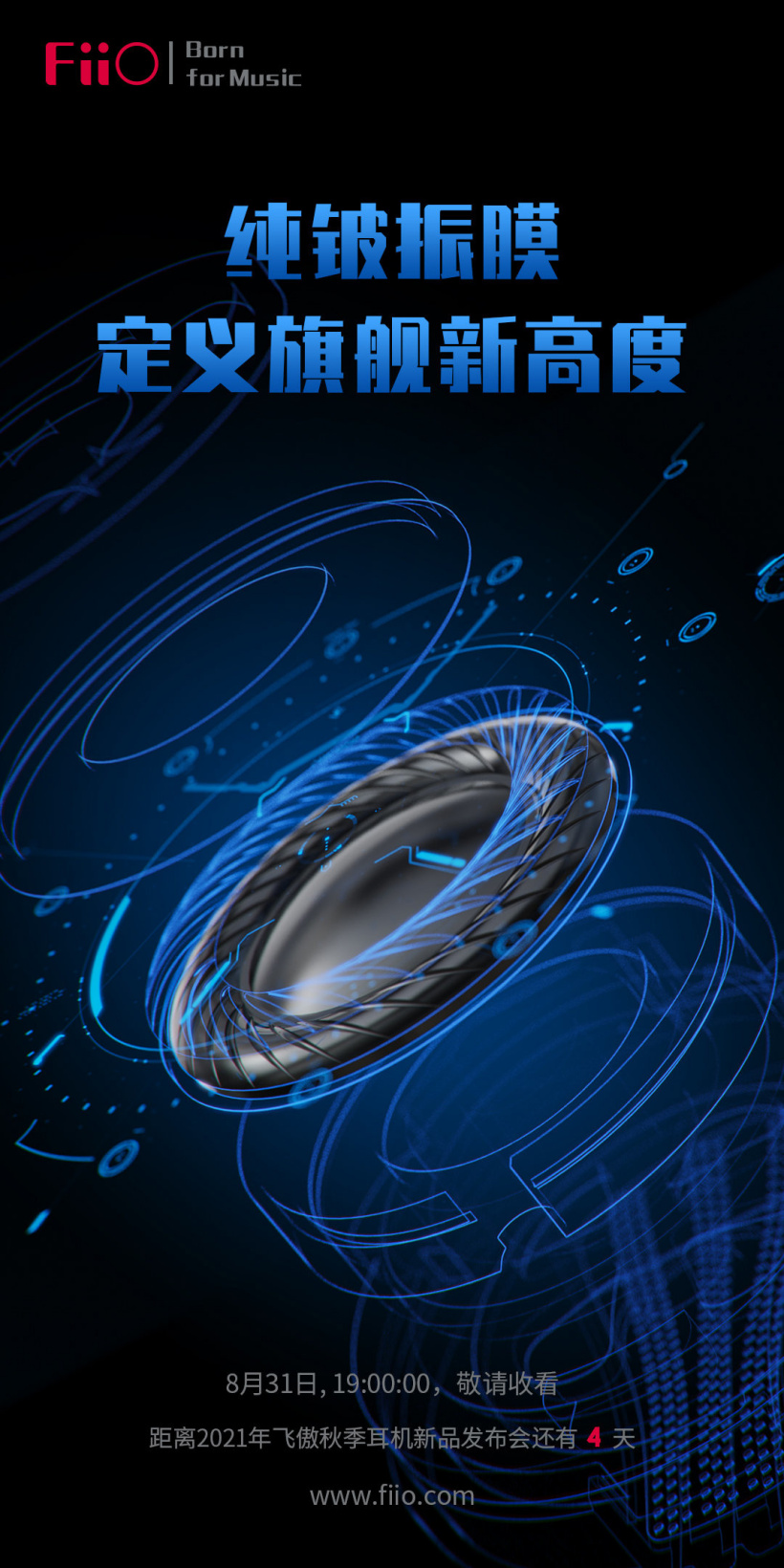 8 月 28 日消息 飞傲将于 8 月 31 日晚 7 点,举办 2021 秋季耳机新品发布会。今日官方发布海报,展现了飞傲 14 周年纪念限量版耳机:FDX。这款产品外形沿用了 FD5 的设计,采用全金属外壳,背部有着立体开槽。