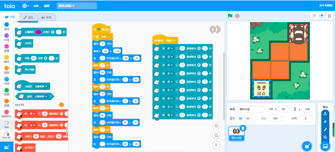 具备基础编程逻辑思维的用户(中、高年级儿童):可以通过toio™进行可视化编程(需要用到电脑或其他终端),利用索尼开发的应用程序,用户可以利用精准的坐标,通过Q宝绘制形状,并使用自己编写的程序来操控Q宝机器人。