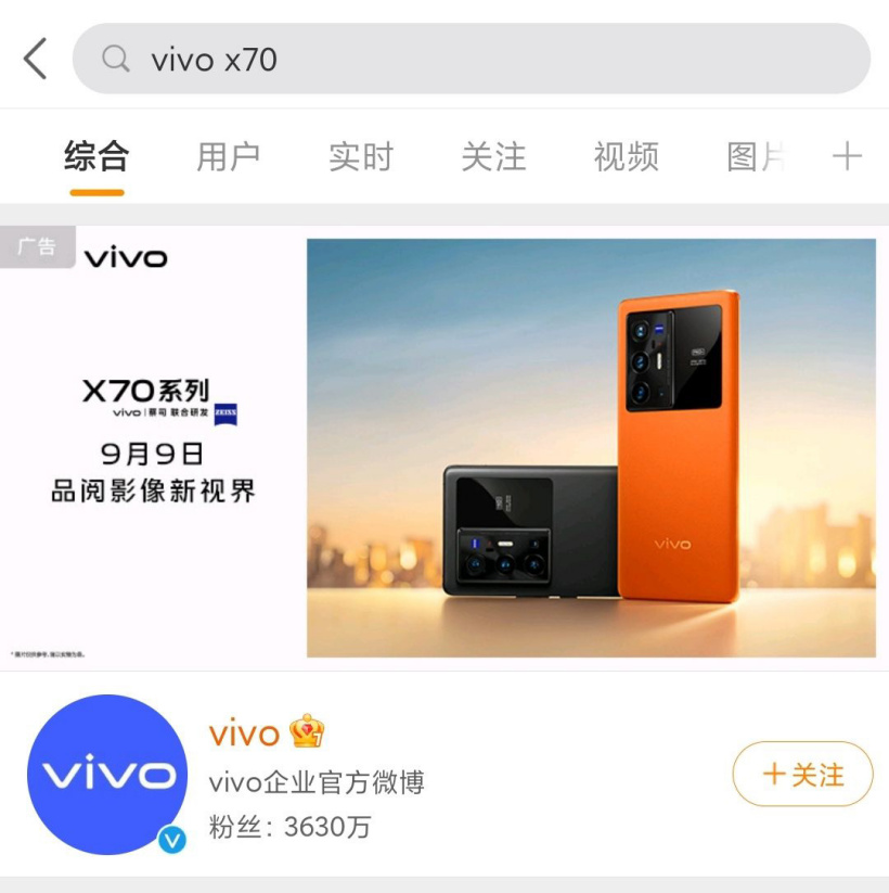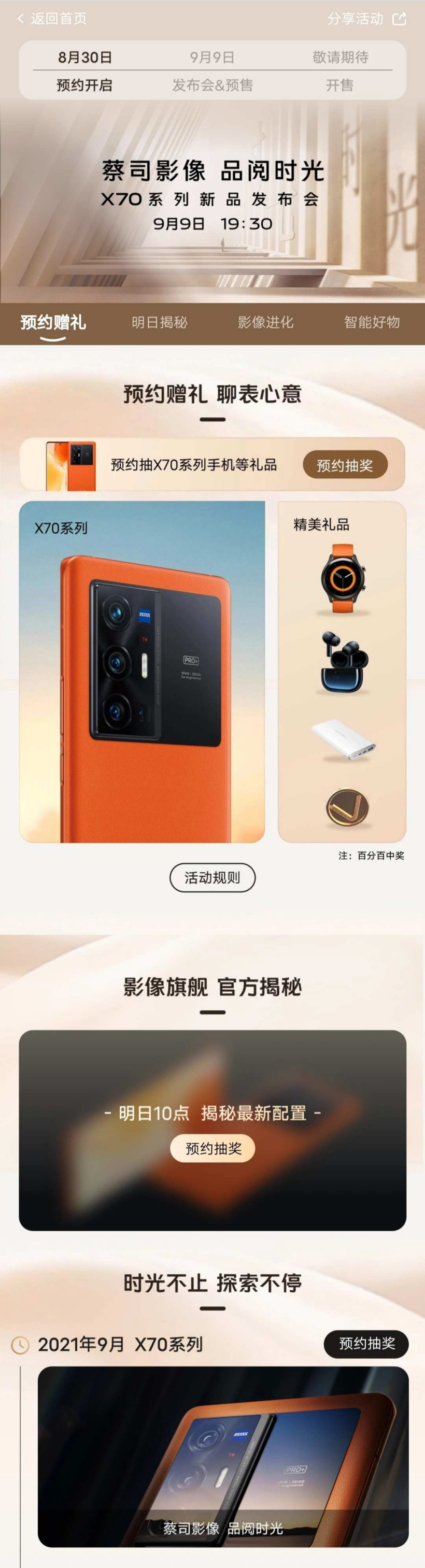 8 月 30 日消息 vivo X70 系列此前已经得到多次曝光,现在,vivo 官方在微博发布广告,新机定档 9 月 9 日 19:30 发布。