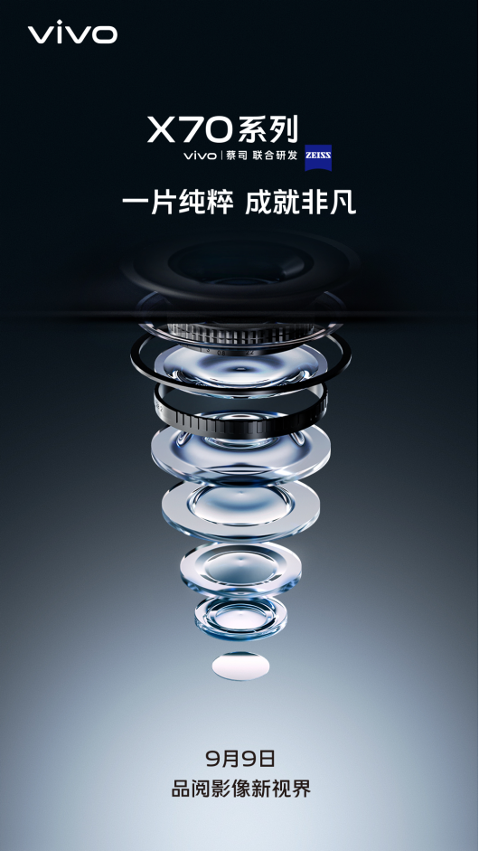 昨日,vivo正式官宣X70系列,发布会海报、产品外观视频悉数亮相。今日,vivo官方再度释放全新预热海报,海报内容直指手机摄镜头中极为重要的镜片模组,海报配文“一片纯粹,成就非凡”。可见,在即将发布的X70系列上,光学器件的迭代同样看点十足。