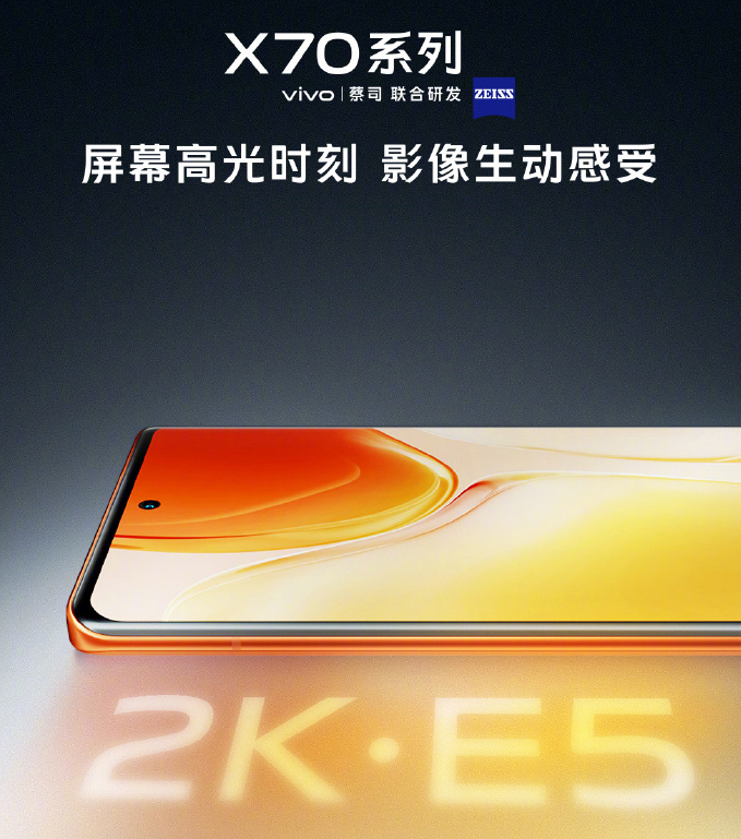 根据此前预热消息,vivo X70 系列采用 2K E5 材质屏幕,中央打孔设计。