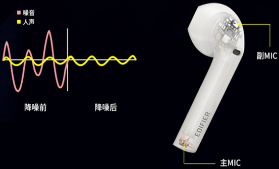 在降噪方面,耳机通过双MIC阵列并加持深度神经网络、定向拾音、噪声抑制、回声消除等智能算法,自动削减环境噪音,提取干净人声,呈现纯真音质与更清晰的语音通话,无论是日常通话,还是上网课,亦或是开网络电话会议等场景,都是你的绝佳拍档。