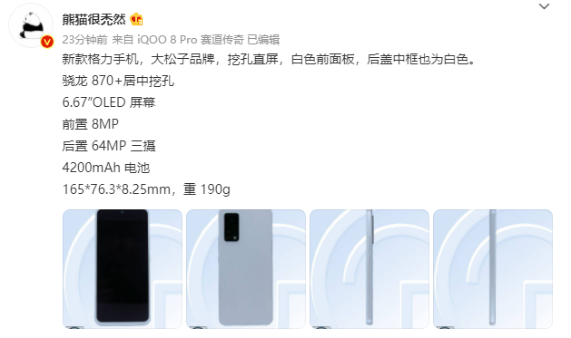 新款格力大松手机曝光:骁龙 870 处理器,居中挖孔直屏