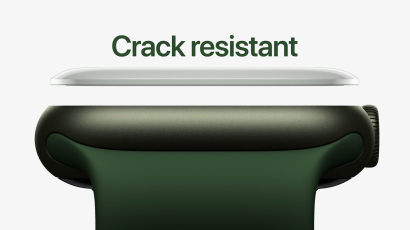 Apple Watch Series 7 表面采用更坚硬的抗震裂的水晶玻璃,并且支持 IP6X 等级的防尘。续航上,这款表可以支持 18 小时的续航,充电线采用 USB-C 之后速度更快,官方称比上代快 33%。