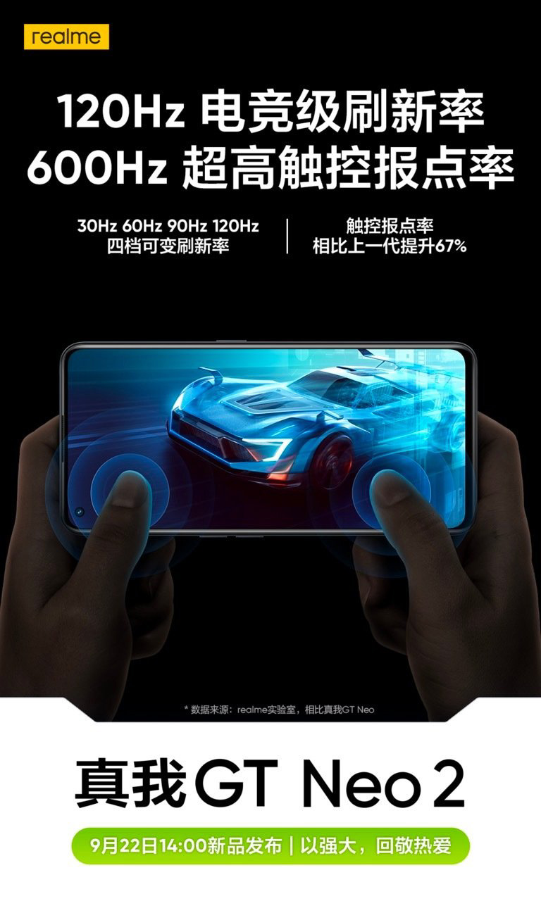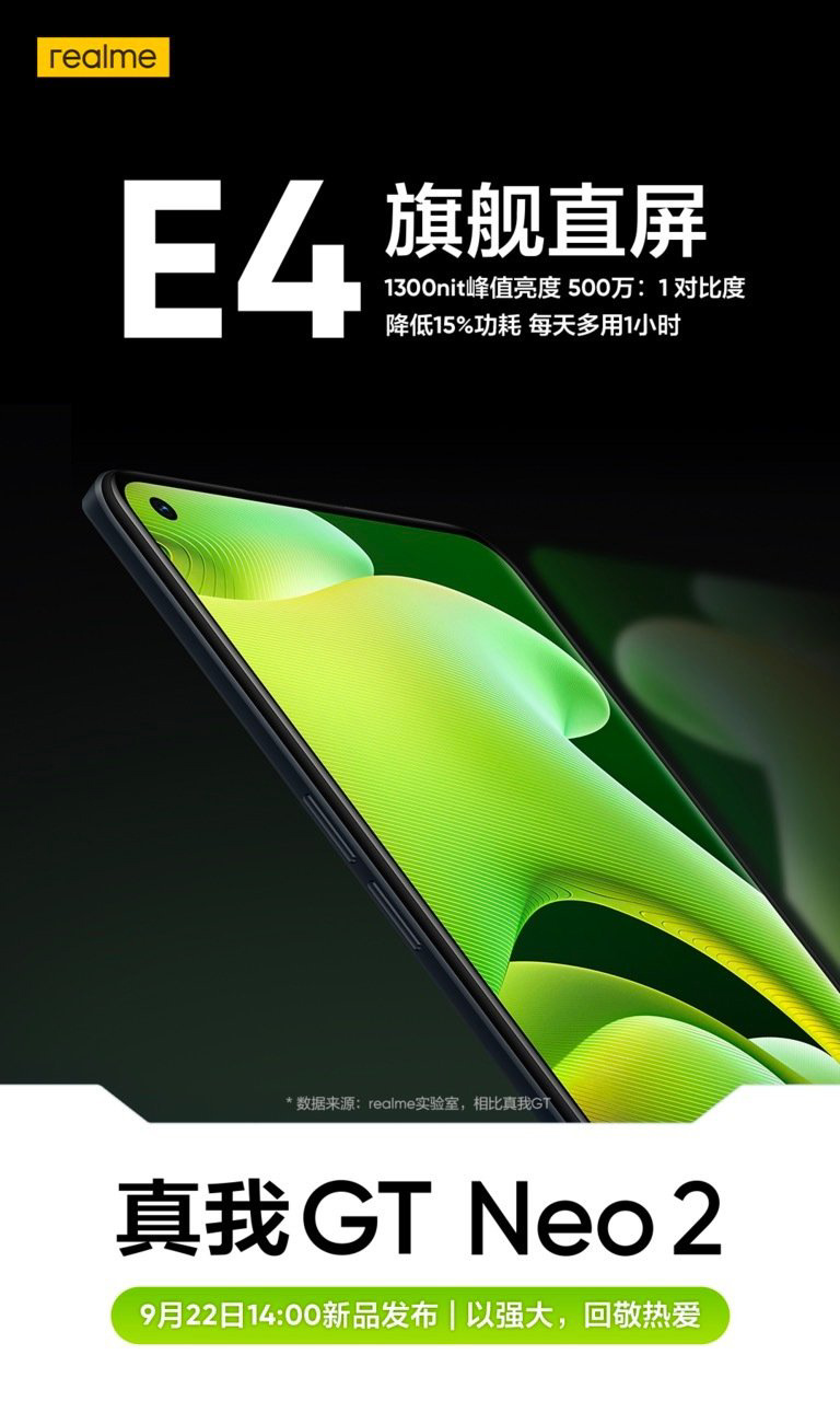 realme 真我 GT Neo2 预热:四档可变刷新率,E4 直屏