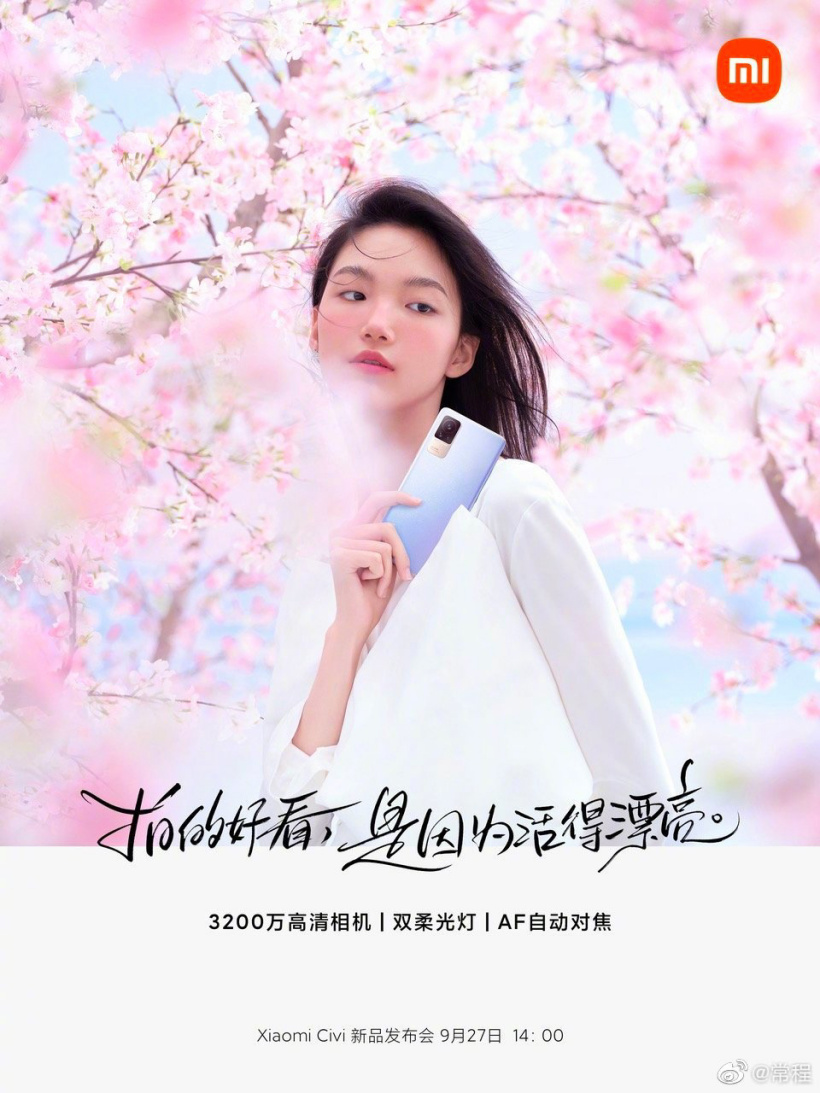 小米 Civi 新品发布会将于 9 月 27 日 14:00 召开,届时将发布小米 Civi 手机。