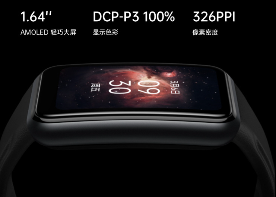 硬件方面,OPPO Watch Free 采用 1.64 英寸 AMOLED 矩形屏幕,屏幕像素密度达 326ppi,覆盖 100% DCI-P3 色域,配备定制皮纹质感表带,机身尺寸 46.0mmx29.7mmx10.6mm,重量只有 33g,搭载六轴运动传感器、光学心率传感器、光学血氧传感器、环境光传感器,主打睡眠监测。