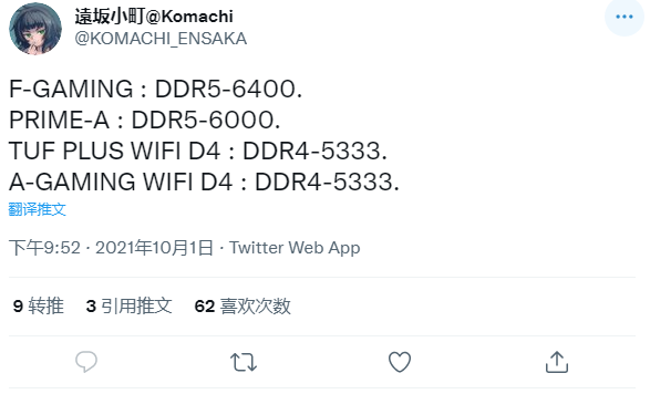 网友 @KOMACHI_ENSAKA 表示,华硕即将推出四种不同主板,分为 DDR4 和 DDR5 两种版本,最大内存速率有所不同。从目前爆料情况来看,各大厂商考虑到初期 DDR5 内存难买和价格问题都会为 Z690 提供另外的 DDR4 版本。