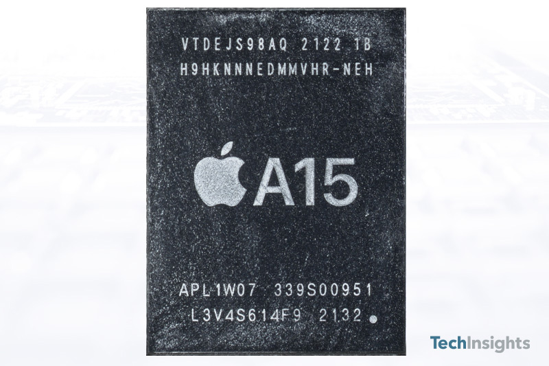 从拆解图可以看出,这款手机依旧采用了双层主板设计,A15 仿生处理器上方叠加了 SK 海力士制造的 6GB LPDDR4X 内存。手机同时使用了 NXP 恩智浦显示端口芯片、Skyworks 芯片,多种电源管理芯片(PMIC),屏幕供电使用了德州仪器的电源芯片。