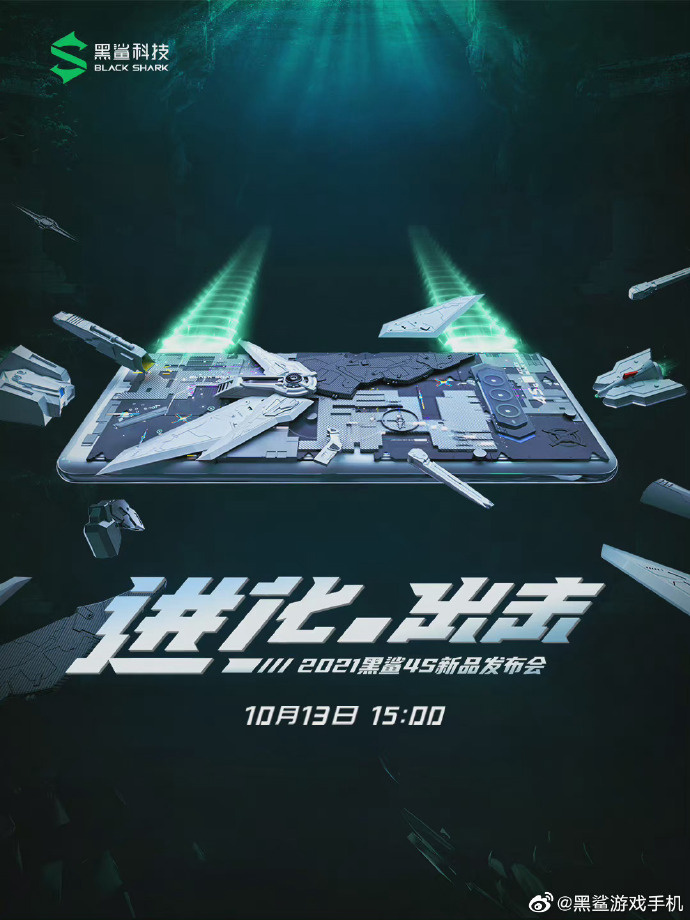 10 月 9 日消息 昨天,黑鲨游戏手机官方宣布,10 月 13 日 15: 00,「黑鲨 4S」直播发布,主题是进化・出击。