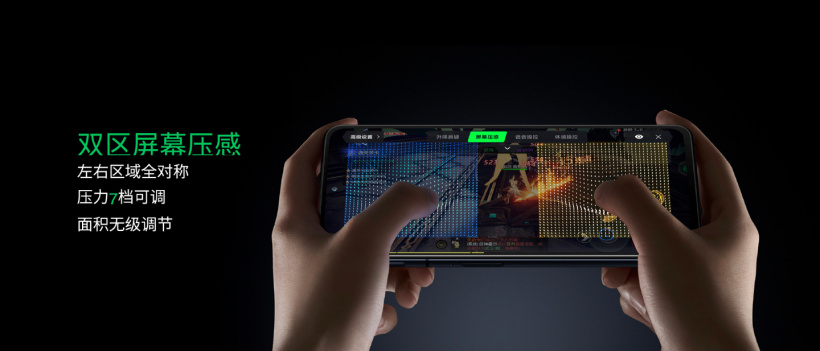 压感操控方面,黑鲨游戏手机 4S/Pro 在安卓阵营首创双区屏幕压感 5.0,左右区域全对称,压感 7 档力度调节,触发力低至 160g。
