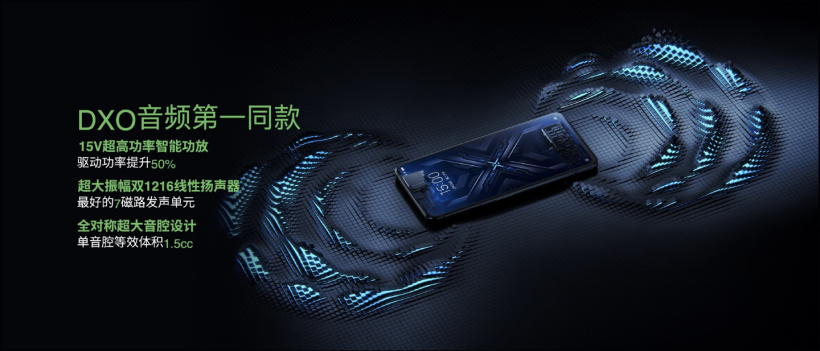 音频体验方面,黑鲨游戏手机 4S/Pro 配备了 15V 智能功放,驱动功率提升 50%,并拥有超大振幅 1216 线性扬声器,全对称超大音腔设计,专业级调音算法。
