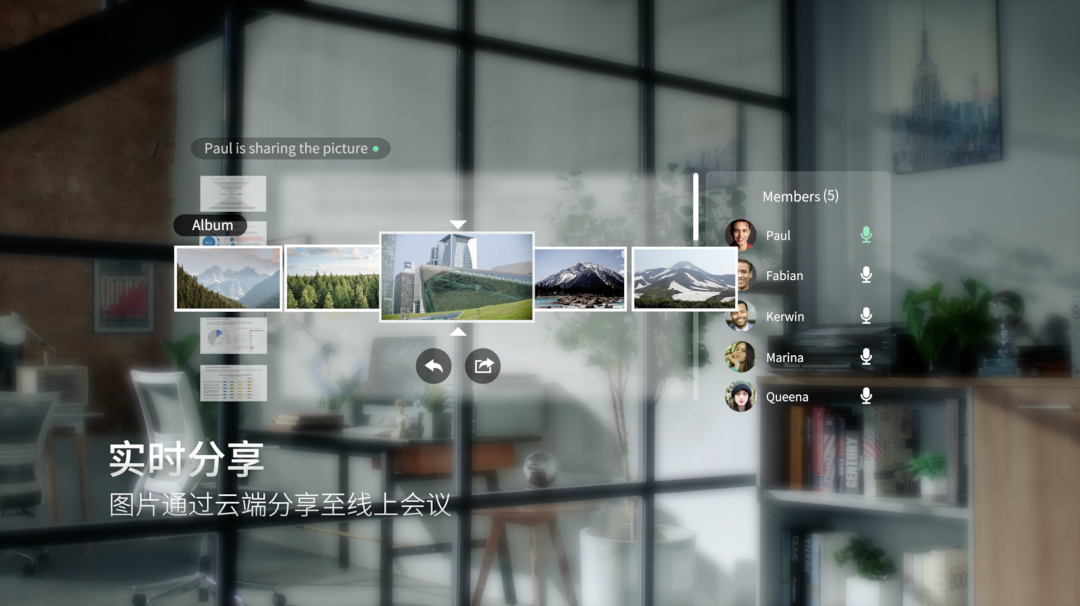在功能和场景方面,雷鸟智能眼镜先锋版除了能够实现基础的「信息提示」、「拍照分享」、「拍照翻译」、「智联控制」外,陆续还将上线「多屏呈现」、「实景导航」、「实景翻译」、「车镜联动」等功能。