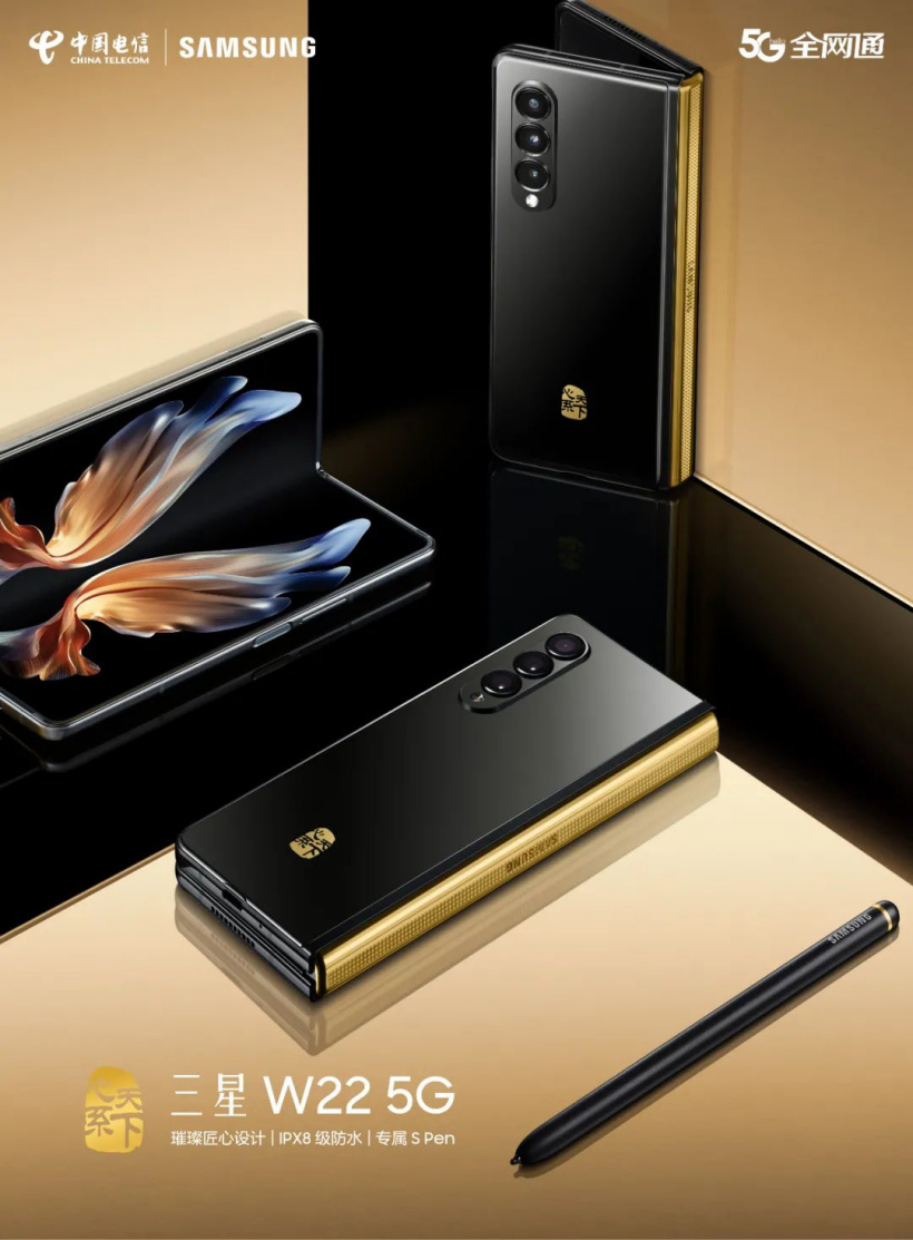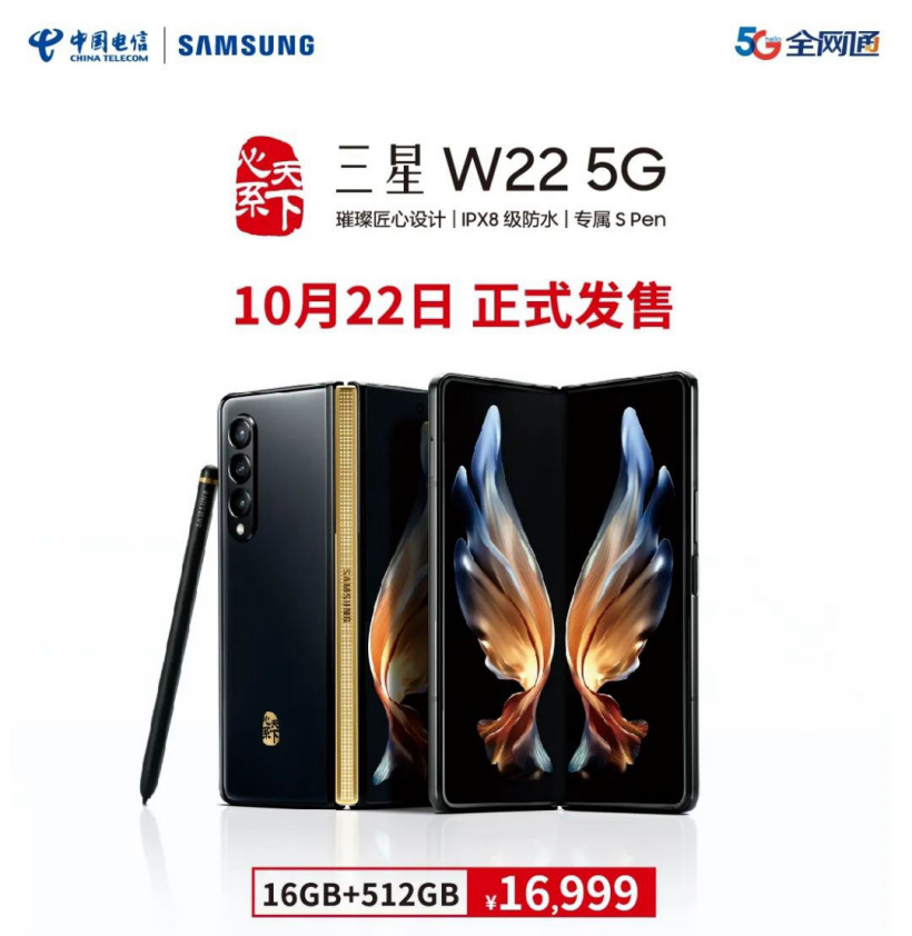 16999 元,“心系天下”三星 W22 5G 手机正式开售:IPX8 防水无孔折叠屏,附带 S Pen