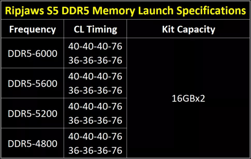 芝奇推出 Ripjaws S5 系列 DDR5 内存:最高 6000MHz,两种时序可选