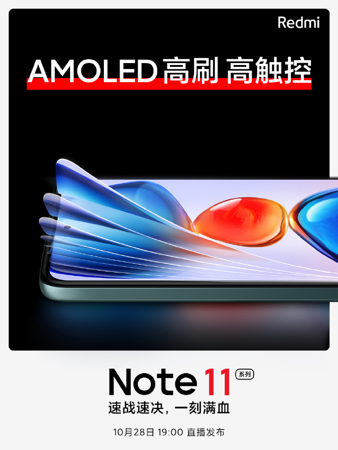 Redmi Note 11 系列将于 10 月 28 日正式发布,当晚会公布售价。