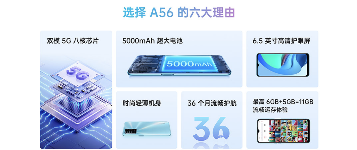 1499 元,OPPO A56 发布:搭载天玑 700 芯片、5000mAh 大电池