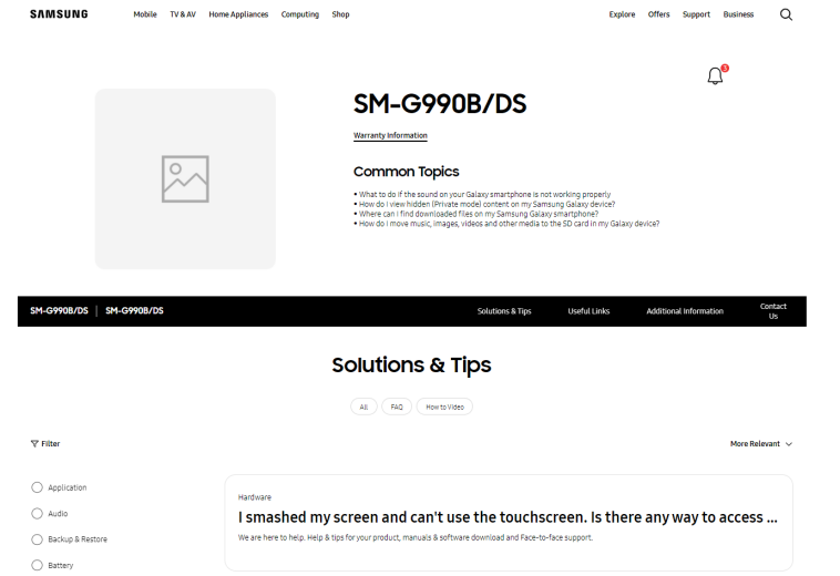 目前在三星爱尔兰官网的产品支持网站现上线了一个产品型号为 SM-G990B/DS 的全新页面,该型号正是之前曝光的三星 Galaxy S21 FE 的产品型号,该机型曾被认为由于全球芯片短缺以及供应链问题而被砍掉。