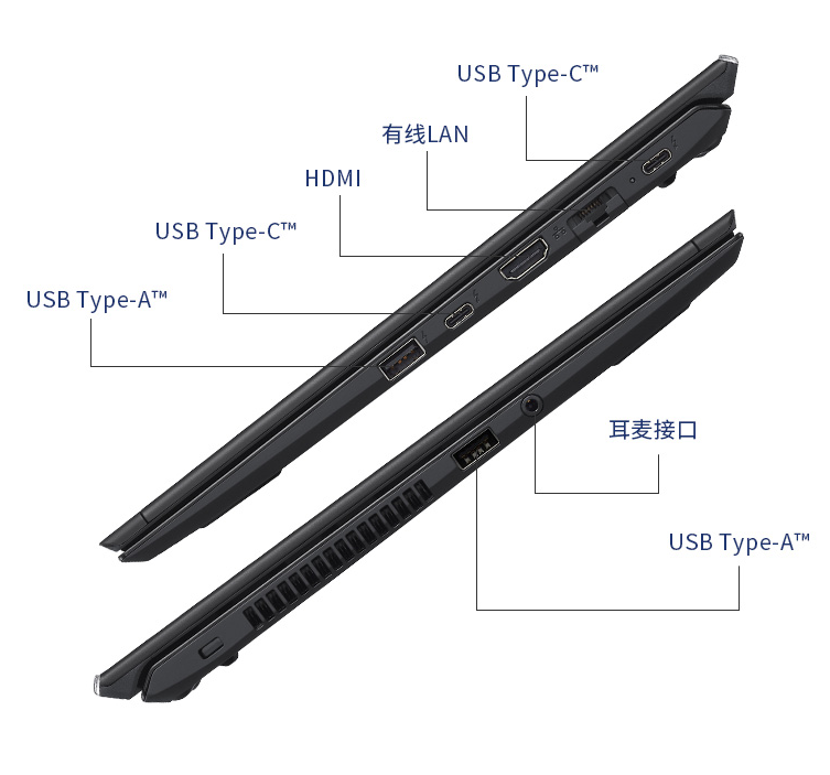 VAIO SX14 2022 款笔记本 搭载丰富的接口,其中包含双雷电 4 接口、有线 LAN 网口以及两个 USB-A 型接口
