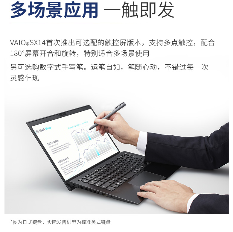 这两款笔记本采用三维立体成型碳纤维顶盖,手感细腻,重量轻,SX12 笔记本可以轻至 947g。笔记本的屏幕支持 180° 开合,打开后自动支撑起机身,使得键盘与桌面形成一定的角度。