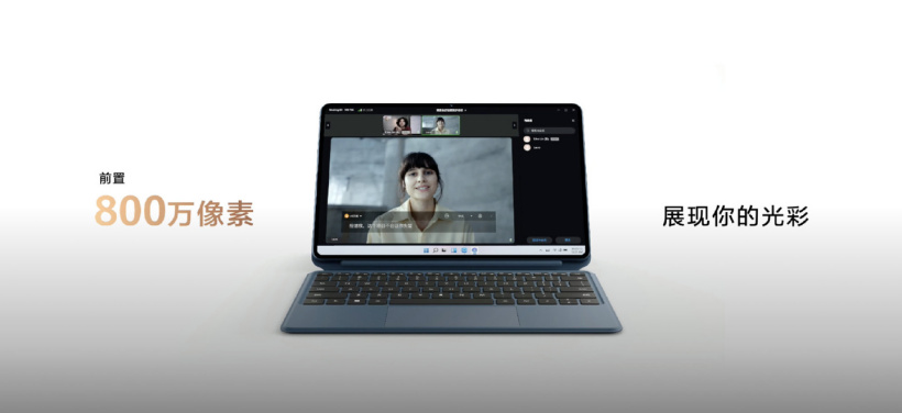 华为 MateBook E 配备高清前后置摄像头,四麦克风智能降噪,四扬声器高低音分频。