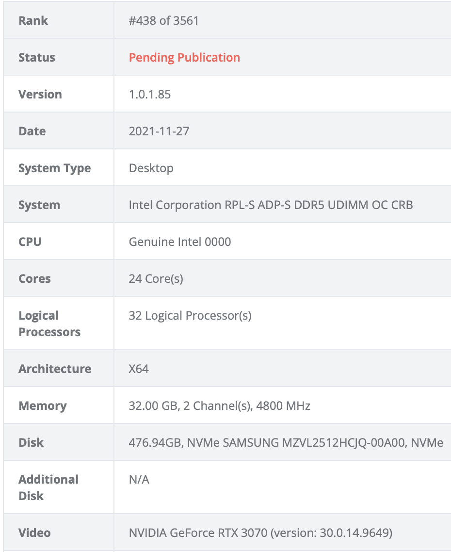 12 月 4 日消息,据 KOMACHI_ENSAKA 消息,英特尔将在明年发布的 13 代酷睿桌面处理器现身跑分平台。