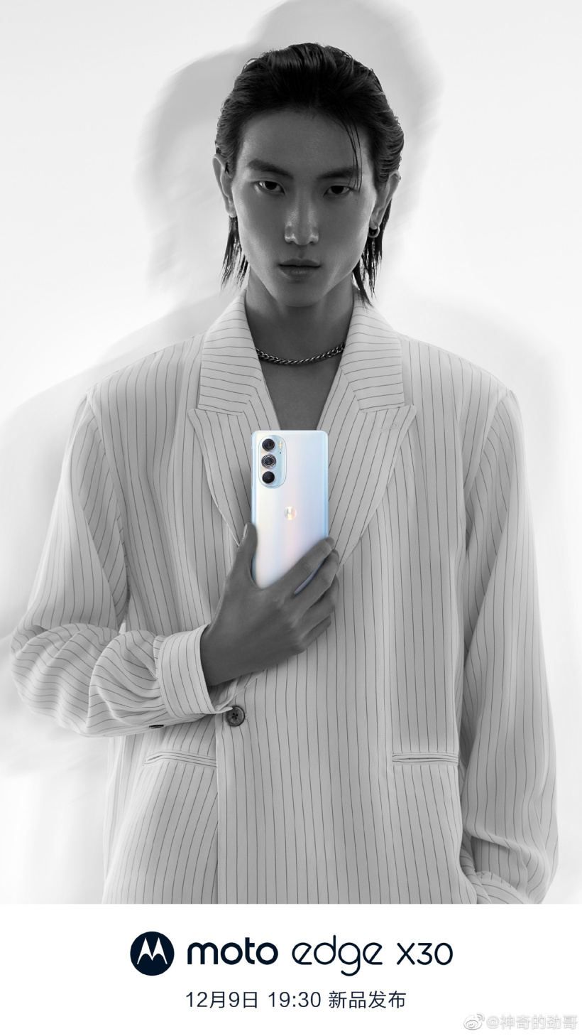 摩托罗拉 edge X30 将于 12 月 9 日发布,首发骁龙 8 一代芯片。从图片上看,手机背部与此前爆料、入网“证件照”类似,具有三颗摄像头,台阶部分凸起不明显。