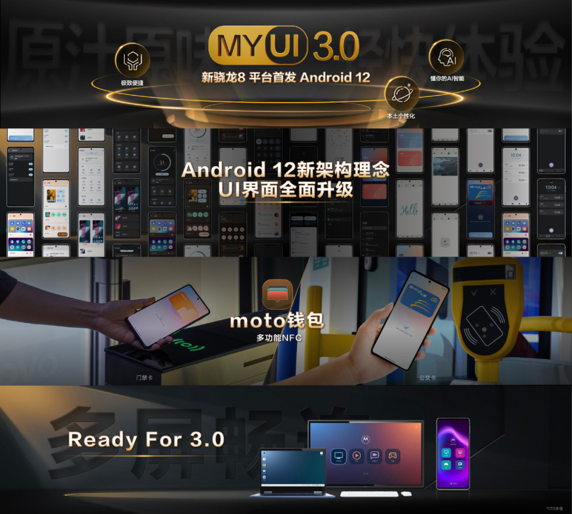 软件方面,摩托罗拉 moto edge X30 采用 MYUI 3.0,基于全新安卓 12 打造,支持多功能 NFC、Ready For 3.0。