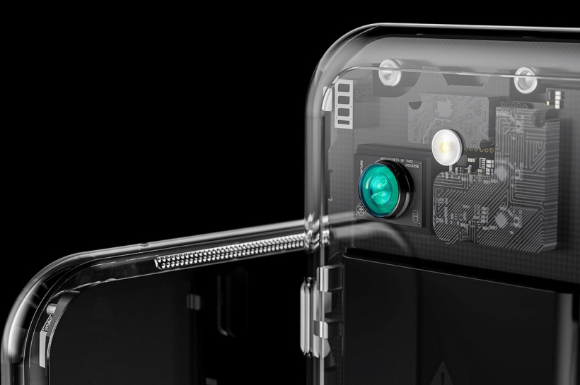 这款手机预计将边框和后盖集成在一起,为纯透明材质,可以看到内部的电池、主板结构以及无线充电线圈。一名海外设计师制作了渲染图,对这款手机的形态进行猜测。