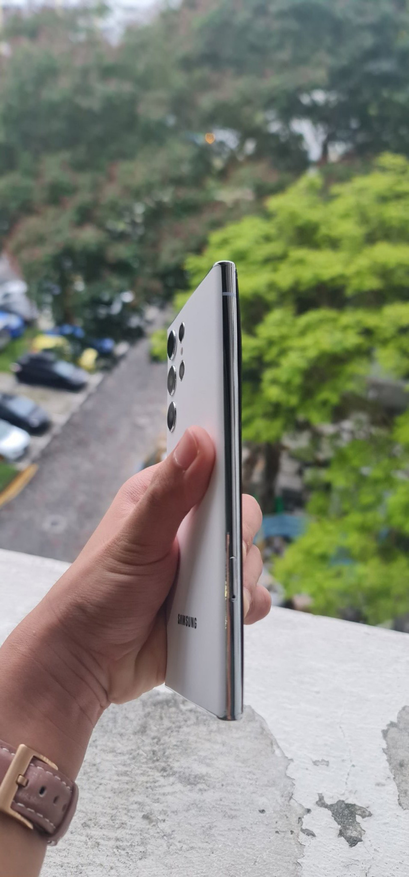 12 月 26 日消息,今日有网友放出来几张三星 Galaxy S22 Ultra 的真机上手照,向我们清晰地展示了这款机型的外观。