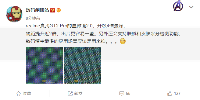@数码闲聊站 透露,该机拥有“显微镜 2.0”,升级 4 倍景深,物距提升近 2 倍,而且还支持肤质和⽪肤⽔分检测功能,甚至还能用来检测屏幕像素排列,与 OPPO Find X3 的微距镜头类似。