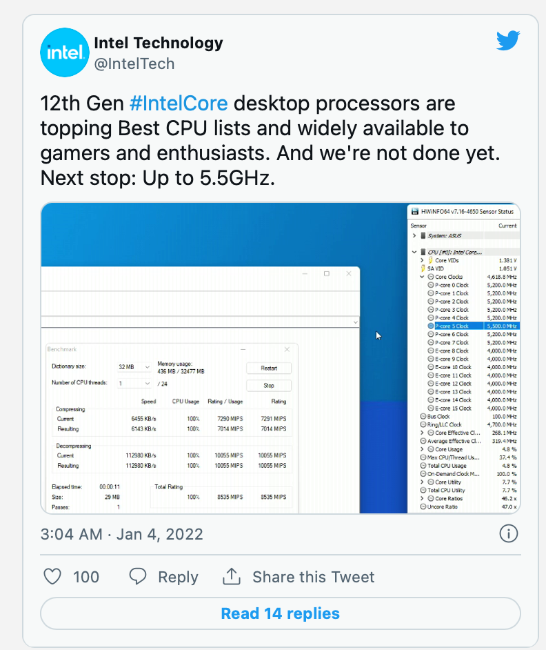 英特尔预热新款 i9-12900KS,睿频最高 5.5GHz