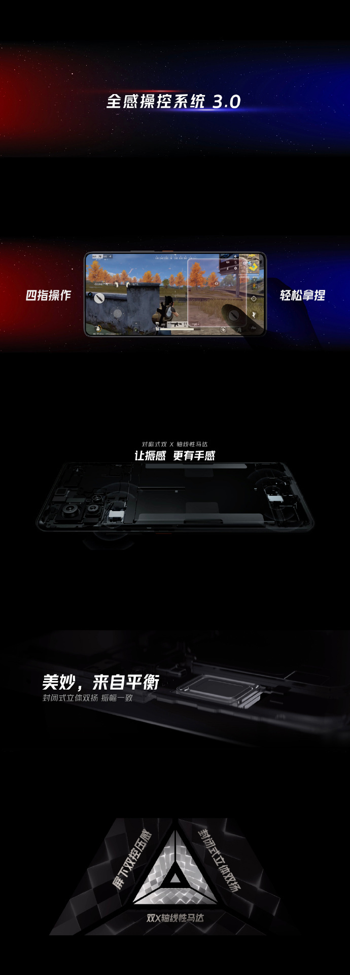 iQOO 9 手机搭载全感操控系统 3.0,屏下双控压感面积进一步增大;两颗稳态振动量更大的 X 轴马达,4D 游戏振感适配了《天谕》《王牌竞速》等,带来震撼手感;封闭式立体双扬,振幅一致,听感更平衡。