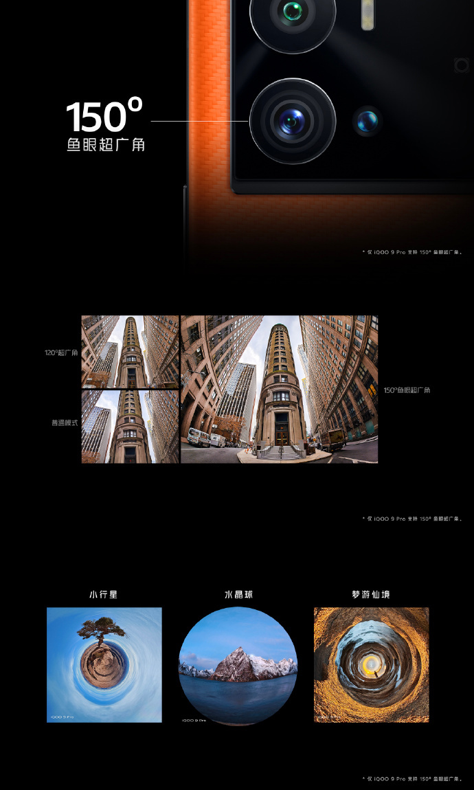 iQOO 9 Pro 首发新一代传感器 GN5,1/1.57" 英寸大底,配合全像素双核对焦 Pro、微云台,随手拍摄画面稳定清晰。更通过 UAR、色素旋涂等减少鬼影眩光。全新 150° 鱼眼超广角,带来更广画面、更多玩法。