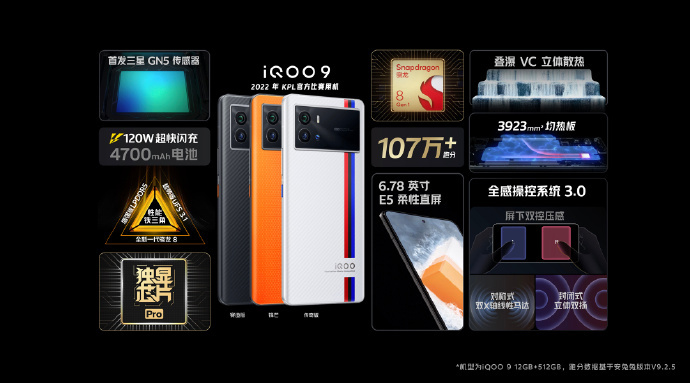 原标题:3999 元-5999 元,iQOO 9 / Pro 手机正式发布:搭载骁龙 8 Gen 1 芯片,全系标配 120W 超快闪充 4700mAh 电池